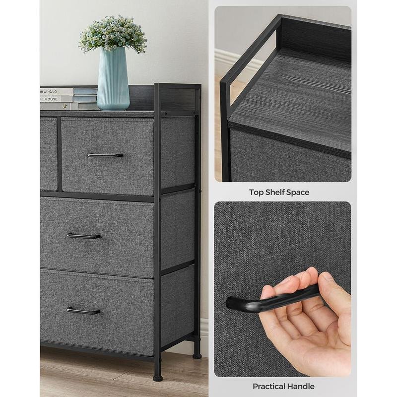SONGMICS fabric chest: lightweight but strong. Handles make opening drawers easy.